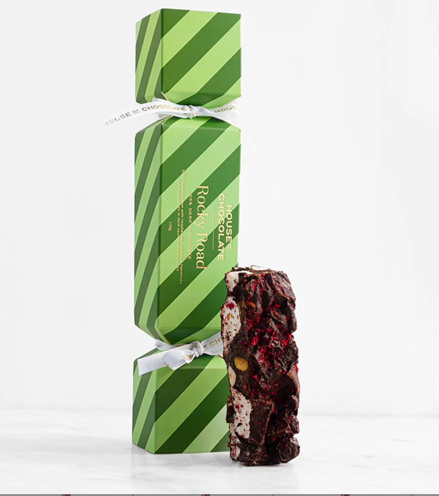 1 x House of Chocolate Dark Chocolate Tin Bauble 100g DF OR 110g Rocky Road Crackcer